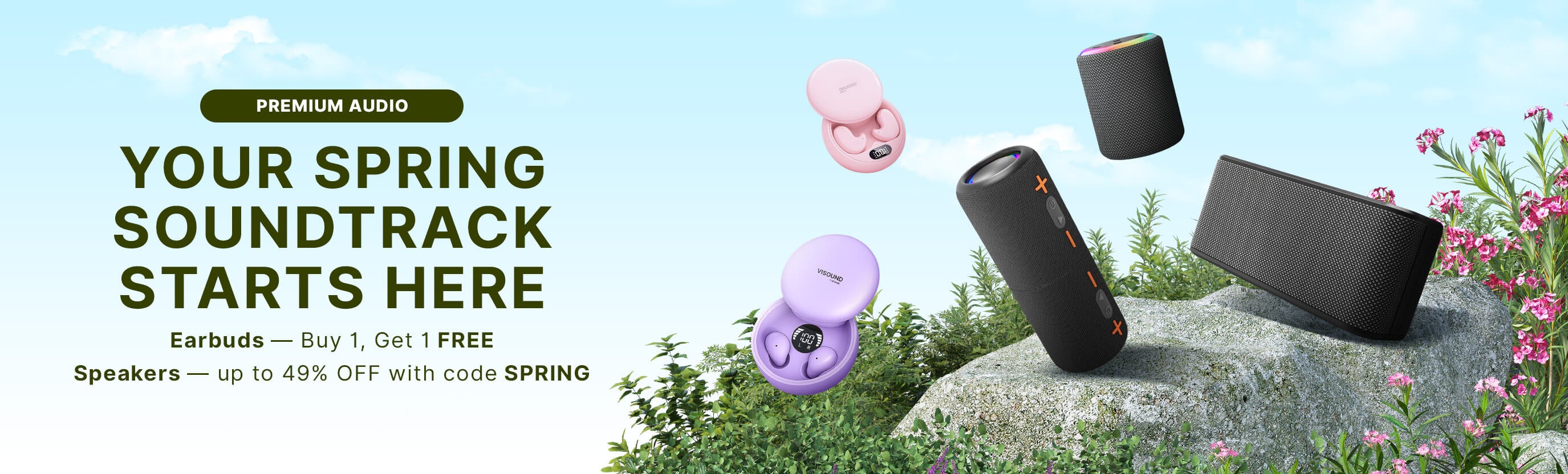 SPRING AUDIO DEALS • BUY 1 GET 1 FREE • UP TO 49% OFF • CODE: SPRING