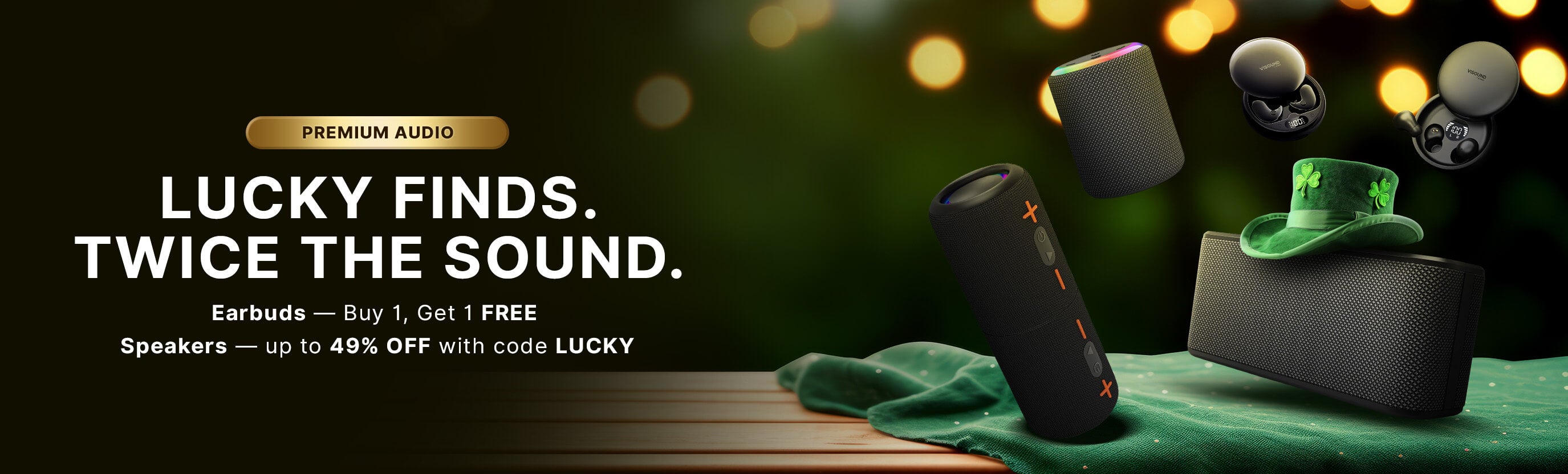 LUCKY AUDIO DEALS • BUY 1 GET 1 FREE • UP TO 49% OFF • CODE: LUCKY